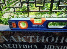 Перед тем, как приступить к работам по восстановлению надгробья, мы проверили с помощью уровня угол наклона памятника относительно горизонта. Памятник действительно оказался скошенным, а потому нуждался в реставрации.